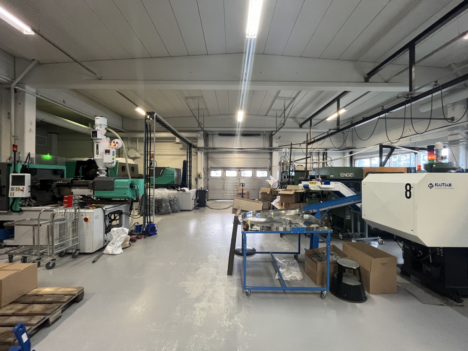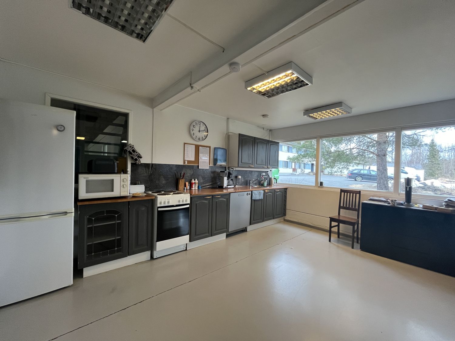 Toimisto ja sosiaalitilat ovat siistit - iso taukotila, avokonttori ja erillinen neuvottelutila. Toimistotilat ovat suoraan yhteydessä hallitilaan helpon arjen sujumiseksi.