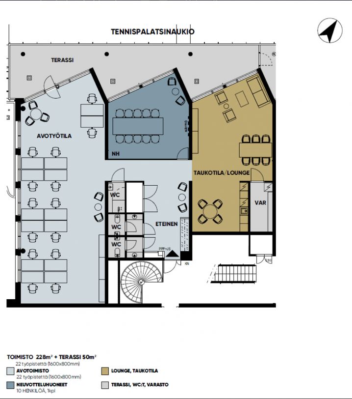 Vuokrataan upea toimistotila Kampin keskuksesta. Tilassa on avotilaa, neuvotteluhuone, reilun kokoinen loungetila keittiöllä, sekä oma 50m2 terassi Tennispalatsin suuntaan. Tilaa on mahdollista muokata seuraavan vuokralaisen toiveiden mukaan.