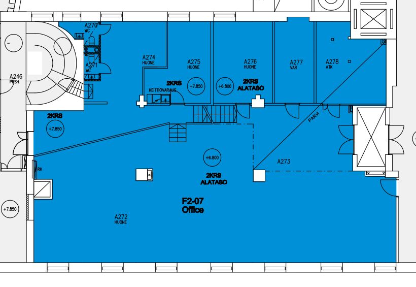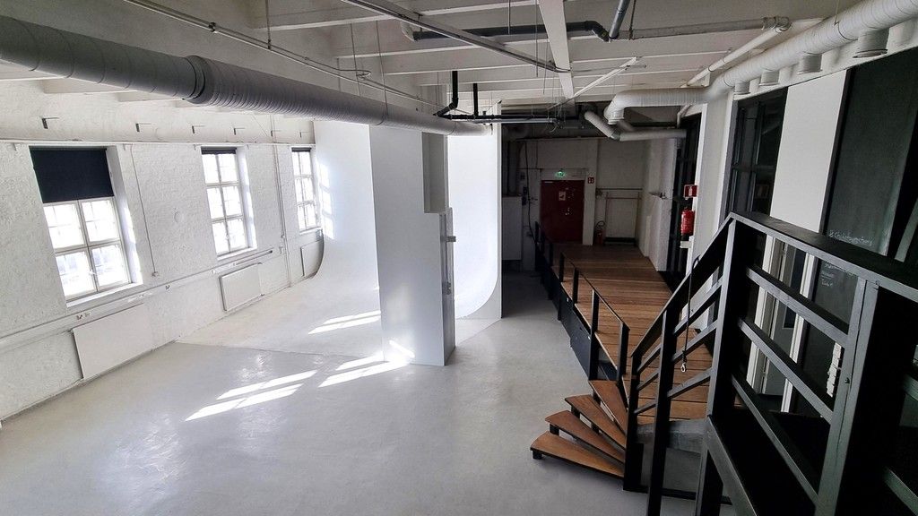 Tämä 446 m² tila sijaitsee kiinteistön 2. kerroksessa. Tila on korkeaa ja se soveltuu toimisto- tai valokuvausstudiokäyttöön. Tilassa on 93 m² parvi. Tilan korkeus on noin 4,5 metriä.