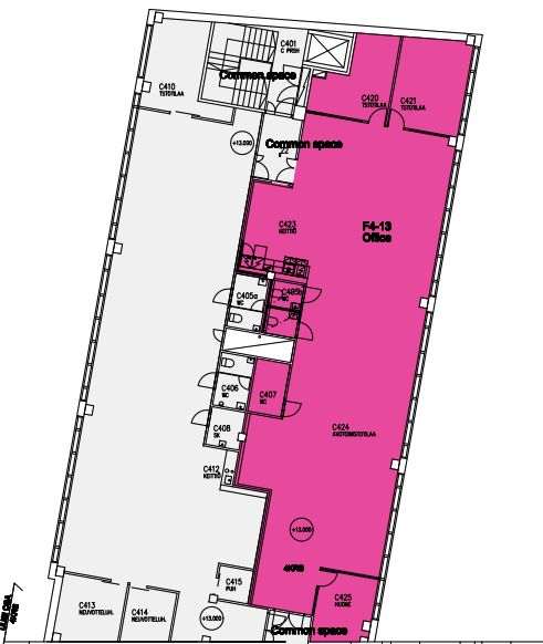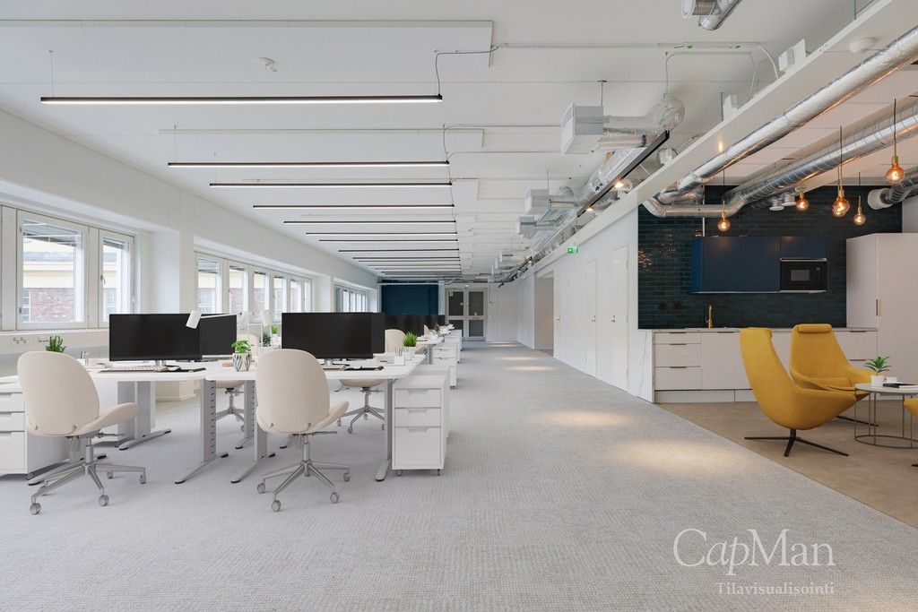 Tämä 239,5 m² tila sijaitsee 4. kerroksessa kiinteistön uudemmalla puolella. Toimistossa on muutama huone, avotilaa sekä omat keittiö- ja wc-tilat. Muuttovalmis toimisto, joka on vasta remontoitu.