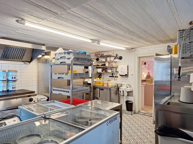 Vuosisadan taitteessa valmistuneessa rakennuksessa on Kirkkotorin kupeesta myytävänä liikehuoneisto. Huoneistossa toimii tällä hetkellä jäätelöbaari. Tila on hyväkuntoinen ja siisti. Pinta-ala on noin 136 m². Huoneistossa kolme isoa huonetta, keittiö ja kaksi WC:tä sekä matala kellari ja eteinen. Sisääntuloja huoneistoon on kolme, yksi Kirkkokadun puolelta ja kaksi huoneiston takapihalta.