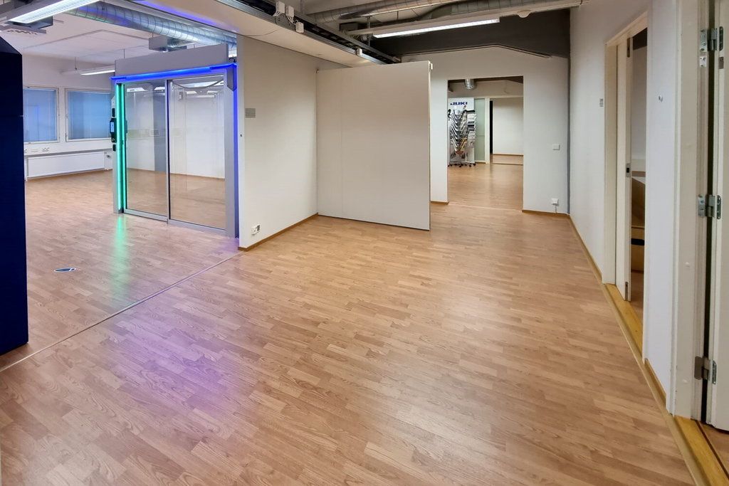 Tämä 1. kerroksessa sijaitseva 1371 m² tilakokonaisuus koostuu 505 m² ja 866 m² tiloista, jotka soveltuvat varasto-, toimisto ja kevytuotantoon. Tilat on mahdollista vuokrata yhdessä tai erikseen. Kokonaisuuteen kuuluu useita keittiö- ja wc-tiloja. Lisäksi 866 m² tilassa on myös oma sauna.