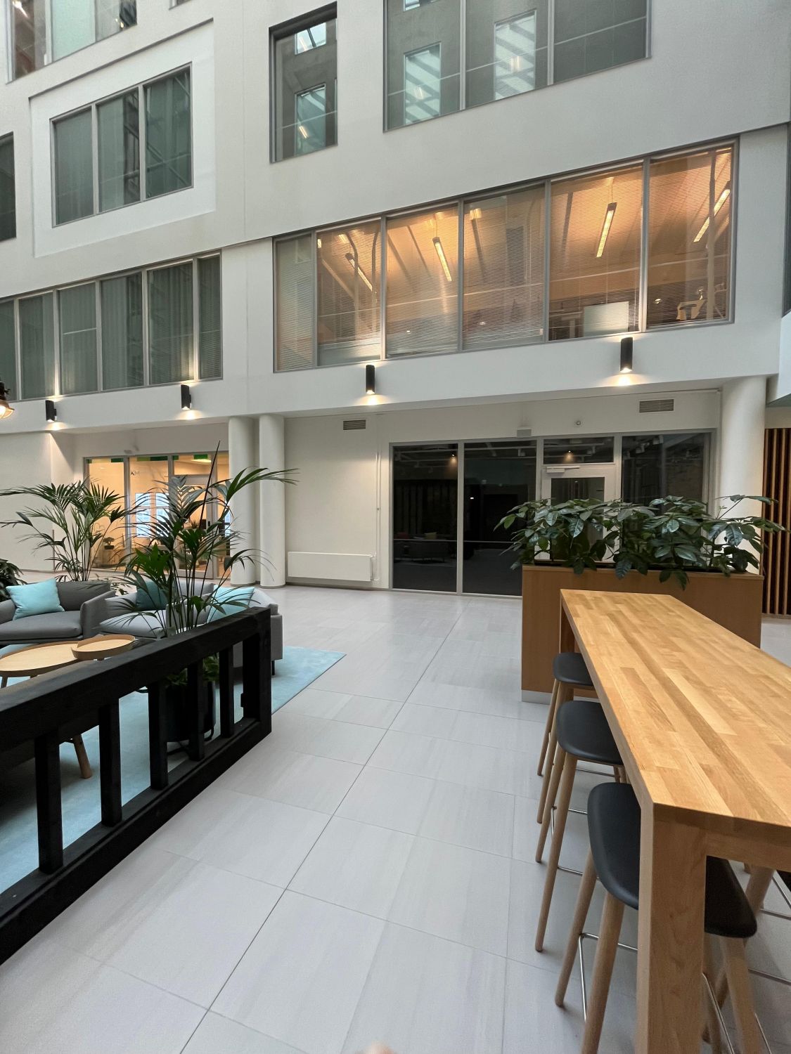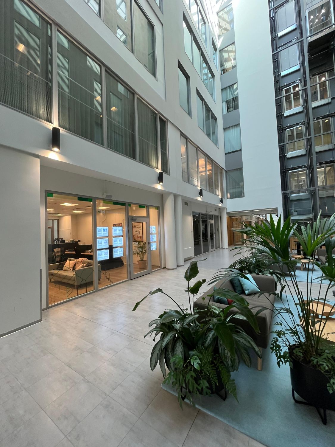 Albergan B–E-taloja yhdistävä valoisa atrium tarjoaa mahdollisuuden taukoihin ja virkistäytymiseen työpäivän aikana. Kohteen keskeisen sijainnin ansioista sinne on helppo saapua niin julkisilla kuin autollakin.