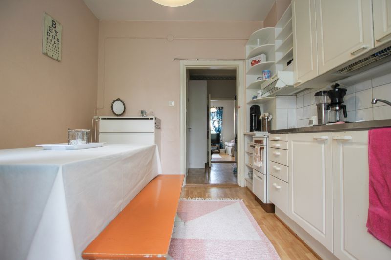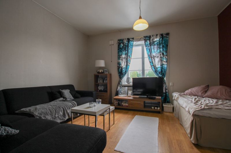 Rakennuksesta on moneksi ja se taipuu idearikkaan omistajan käytössä asumiseen ja monenlaiseen yrittämiseen. Rakennuksen edessä ja takana hyvin paikoitustilaa.