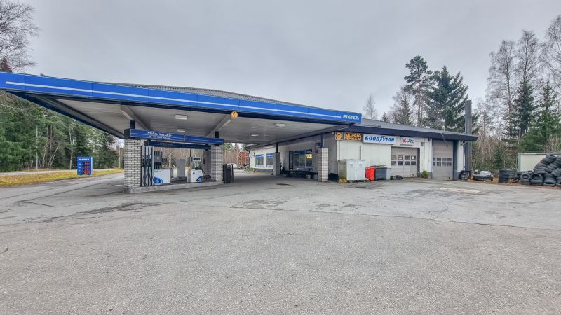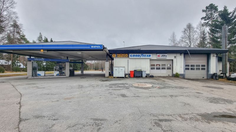 Rakennuksessa myymälä-/kahvilatila, kaksi korjaamotilaa, pesuhalli sekä katostilaa. Toimiva kiinteistö nykyiseen käyttötarkoitukseen tai muuhun käyttöön jalostettavaksi. Edulliset ylläpitokustannukset. Pihalla kolme jakajaa, viisi tankkauspistettä. Tontti 4400 neliötä, joka suurelta osin asfaltoitu. Tule tutustumaan ja ryhdy yrittäjäksi!