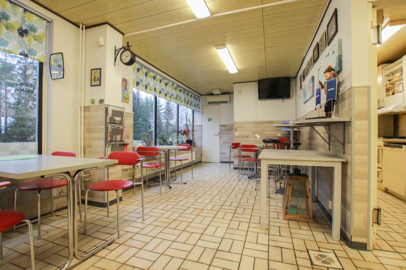 Myymälätila: kahvio, keittiö, 2 wc = noin 115m2.