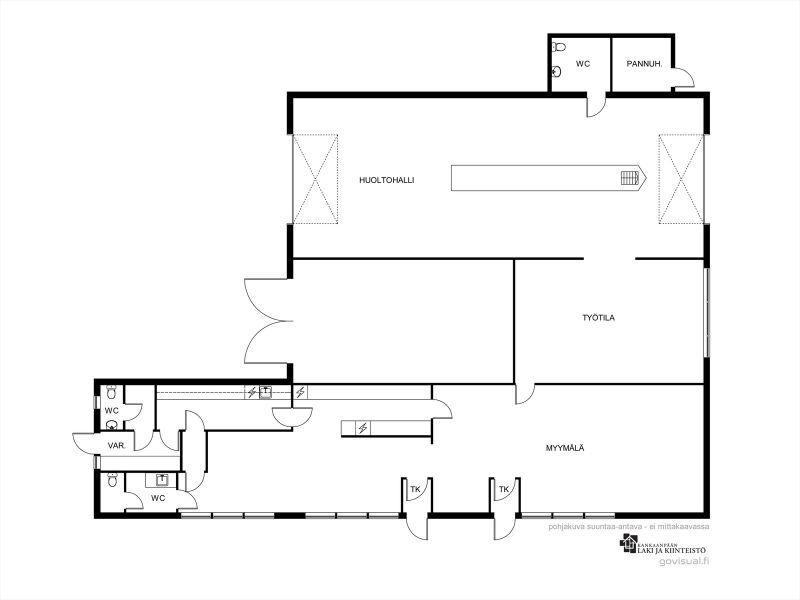 1 korjaamotila, noin 50m2, korkeus noin 3,2m.