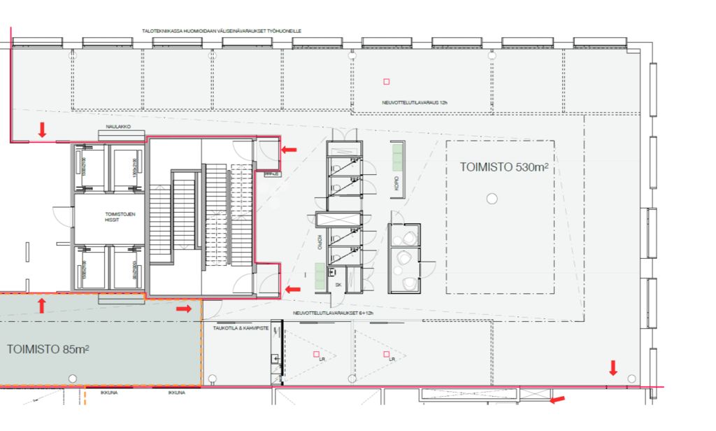 Vuokrattavana 530 m² toimistotila 6. kerroksesta. Toimisto on pääosin avonainen, mutta siihen saa rakennettua huoneita tarvittaessa. Toimistossa on omat keittiö- ja wc-tilat. Tripla Workery tarjoaa toimitilat, jotka joustavat liiketoiminnan mukaan. Viihtyisä työympäristö, kohtaamisten mahdollistaminen ja joustavuus ovat olleet toimistotilojen suunnittelun keskiössä.