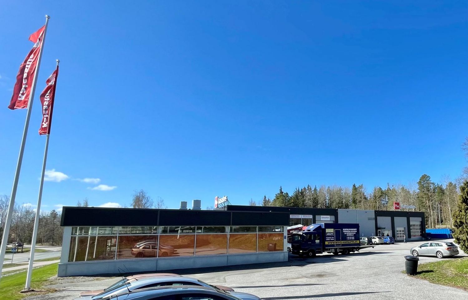 Asvaltoitu iso piha-alue. Helppo yhteys 8-tieltä.