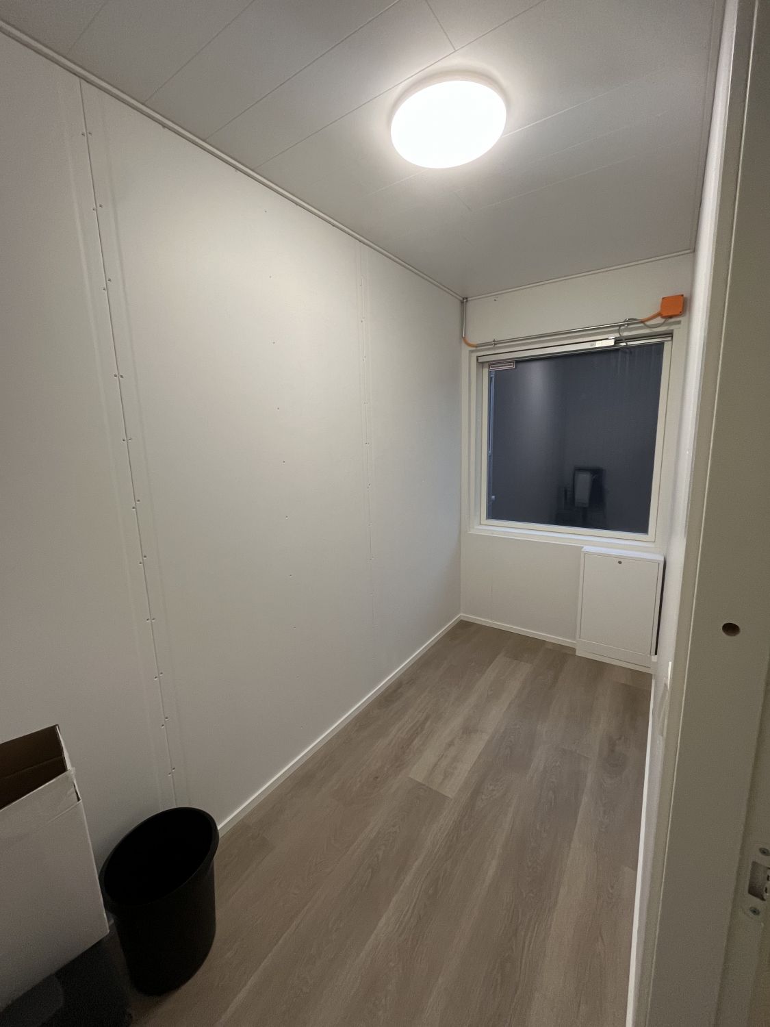 Tilasta löytyy myös pieni keittiö, jääkaappi, wc ja työhuone.