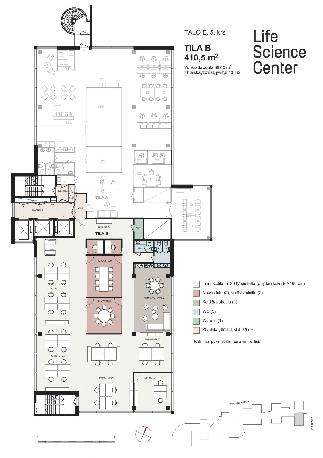 Life Science Center (LSC) eli Keilaranta 10-16 sijaitsee aivan nopeasti kasvaneen ja edelleen kehittyvän Keilaniemen ytimessä. Kyseessä on Suomen merkittävä keskittymä modernin työympäristön yli tuhannelle kansainvälisen tason huippuosaajalle mm. eri biotiede- ja teknologiayrityksessä. Keilaniemi on entisestään kehittyvä alue, jossa yhdistyvät monipuoliset palvelut, luonto, meri ja virkistysmahdollisuudet.