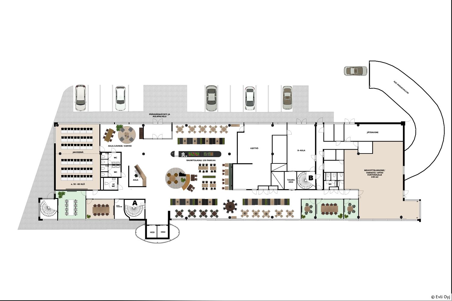 Auditorio, lounasravintola, catering, vuokrattavia neuvottelutiloja, aulapalvelu
