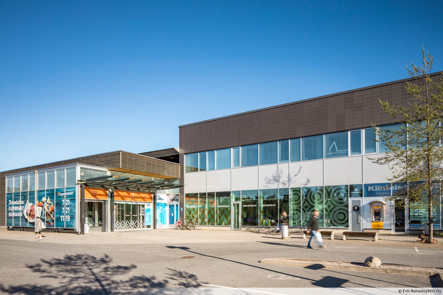 Kauppakeskuksen pihapysäköintialueella on runsaasti pysäköintipaikkoja.