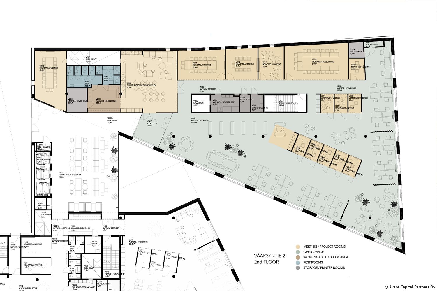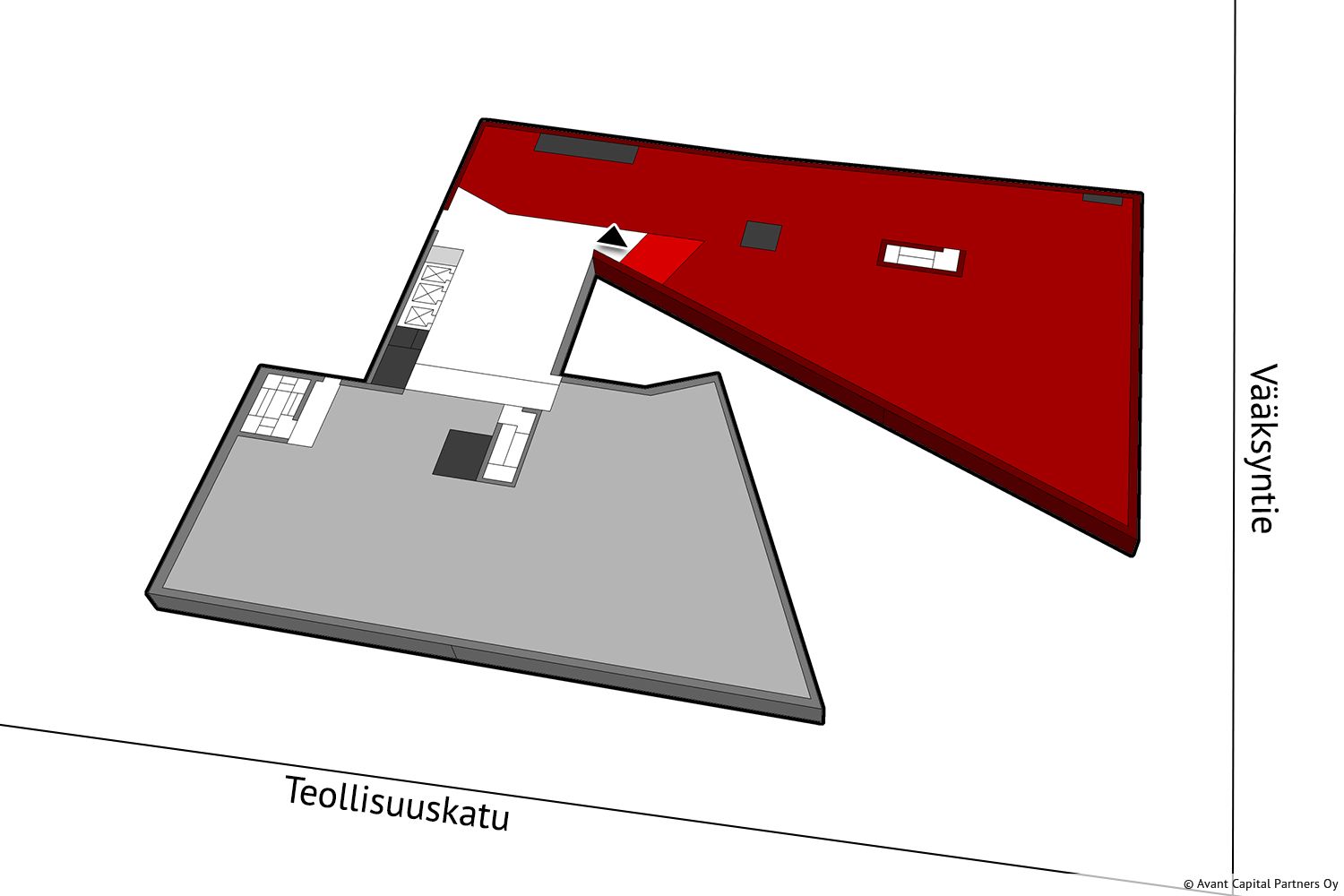 Vuokrattavana toisen kerroksen tilava toimistotila Vallilassa, OP:n pääkonttorina tunnetusta toimistokorttelista. Tässä korkeatasoisessa ja valoisassa toimitilassa on enimmäkseen avotoimistotilaa, jonka lisäksi on mm. vetäytymis- ja kokoushuoneita. Tiloissa on suuret ikkunat Teollisuuskadun ja Vääksyntien suuntiin.