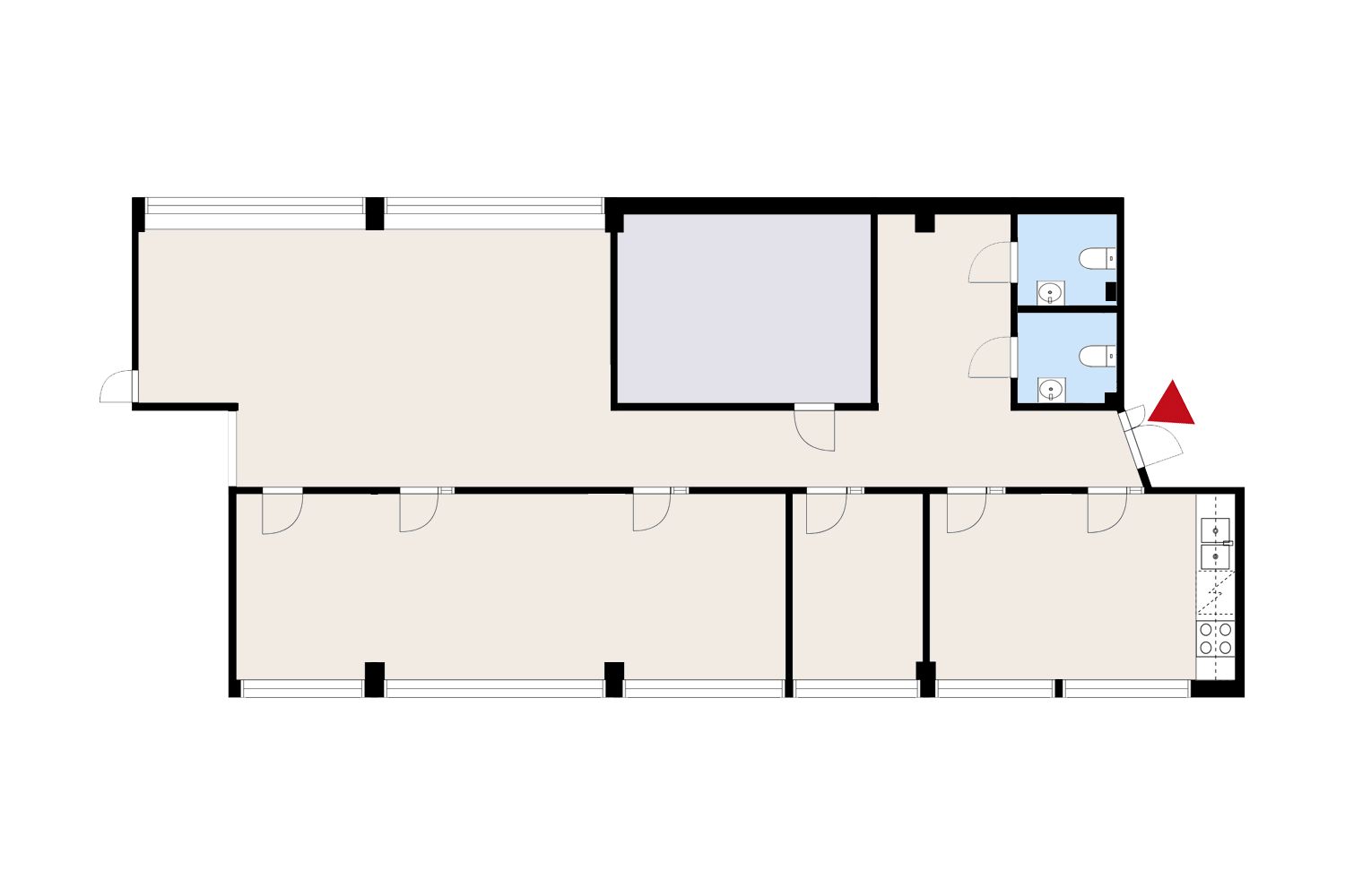 Kohteesta tehty muutossuunnitelma kahdelle lisä toimistohuoneelle.