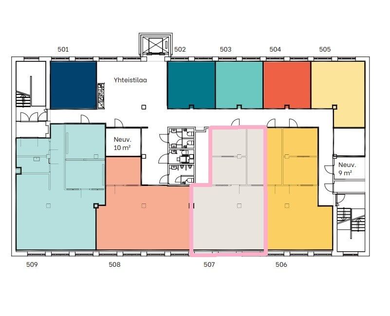 Vallilassa tehokas pieni oma toimisto kahdella huoneella ja avotilalla. Tähän on helppoa tulla - tilan vuokra sisältää tilavuokran lisäksi sähkön, työpiste-kalustuksen, yleisten tilojen ja oman tilan siivouksen, nettiyhteyden (voi toki ottaa myös oman), ja kahden neuvotteluhuoneen maksuttoman käytön. Kerroksesta löytyvät toimistojen yhteiset vessat ja keittiö / ruokailutila sekä neuvottelutila. Ylimmässä eli viidennessä kerroksessa työrauha on taattu.