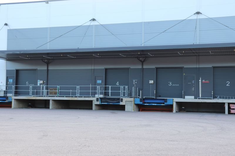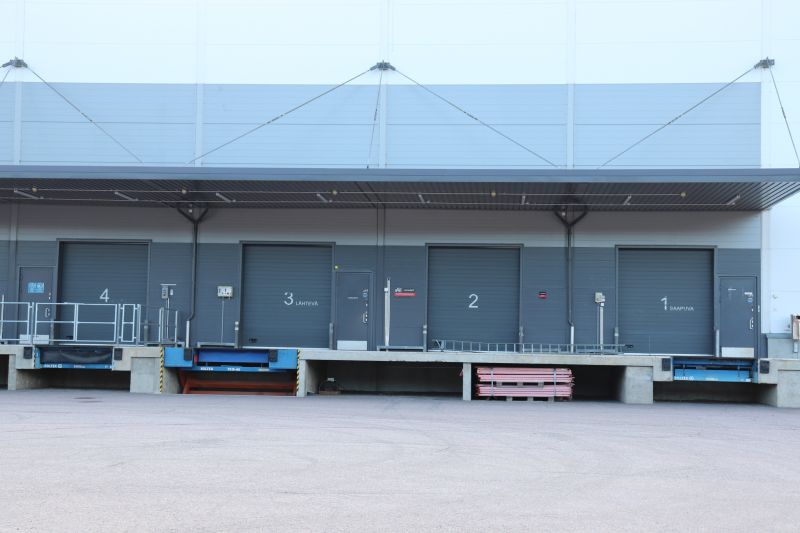 Varasto 1 201 m²: vapaa korkeus 8 m, nosto-ovet lastauslaiturilla