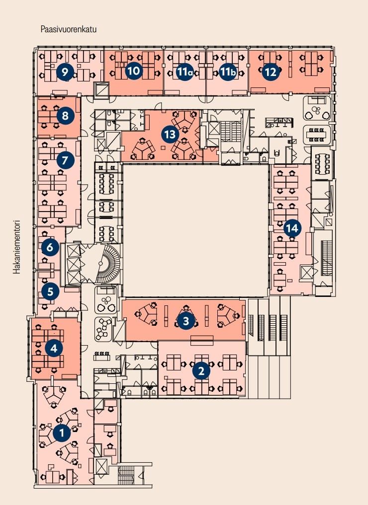POOL Paasitalo on uudistettu tämän päivän tarpeisiin. POOL-tilat sijaitsevat kiinteistön kahdeksannessa kerroksessa, josta on aivan upeat hienot näkymät Paasivuoren puistikkoon, Hakaniemen torille ja aina merelle saakka. POOLissa on 14 erikokoista pientoimistoa, neljä neuvottelutilaa, kaksi puhelintilaa sekä kaksi keittiöloungea. Lisäksi tiloista löytyy suihkut ja wc-tilat.