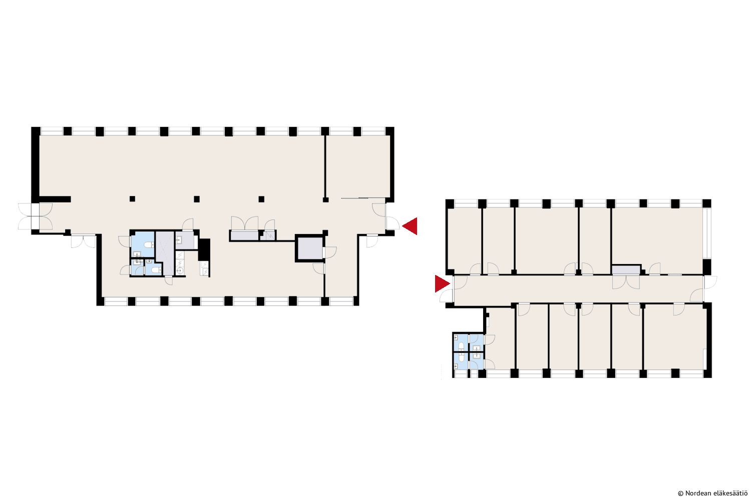 Kahden erillisen 1. kerroksen toimitilan hieno kokonaisuus Sakkaroosin tiilitalosta. Toinen tiloista pääosin avotilaa ja toinen koostuu toimistohuoneista. Molemmissa tiloissa omat wc-tilat. Kiinteistö sijaitsee erinomaisella ja näkyvällä paikalla Taka-Töölössä, Hesperianpuiston laidalla ja lähellä keskustan monipuolisia palveluita. Kohteeseen on hyvät julkisen liikenteen yhteydet.