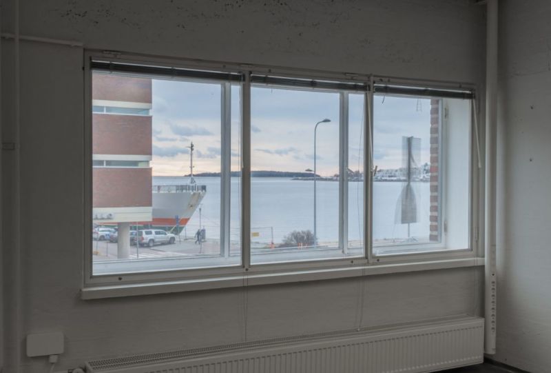 Avoin tila sekä toimistohuoneet joustavat yrityksen henkilöstön tarpeiden mukaan. Tilakokonaisuuteen voi yhdistää toimistotilan lisäksi koulutukseen ja neuvotteluun soveltuvia tilaratkaisuja. Ikkunoista paljastuu merinäköala.