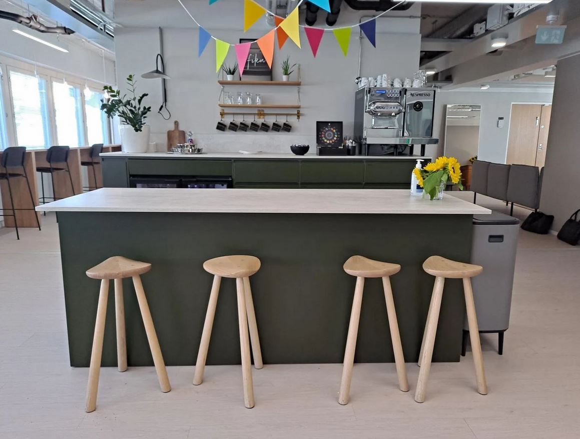 Vuokrattavana 747 m2 toimistotilat ylimmästä 5. kerroksesta. Modernit ja muuttovalmiit tilat ovat valmistuneet 2021. Tilassa on avotilaa sekä useita neuvotteluhuoneita ja sosiaalitilat. Pohjakuvassa on piirrettynä esimerkkikalustus 50 työpisteellä.