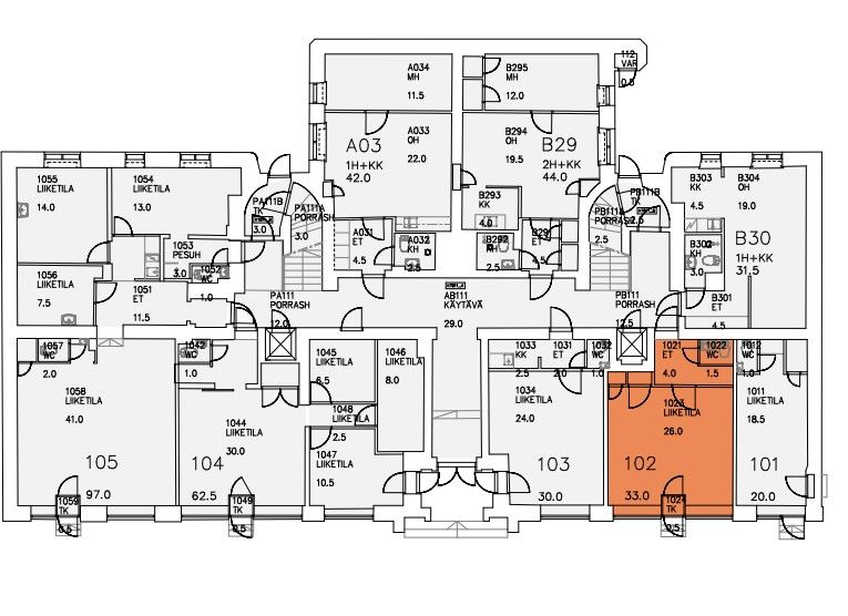 Tila sijaitsee erinomaisella paikalla, aivan kampin kauppakeskuksen ja keskustan palveluiden äärellä.