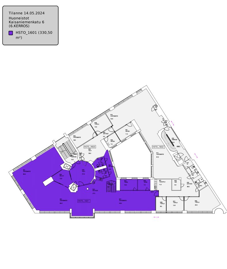 Moderni 6. kerroksen toimitila Kaisaniemenkadulta. Tilassa avotilaa ja kolme työ-/neuvotteluhuonetta ja omat wc- tilat. Kohde sijaitsee hyvällä paikalla Helsingin Kaisaniemessä, keskustan palveluiden läheisyydessä.