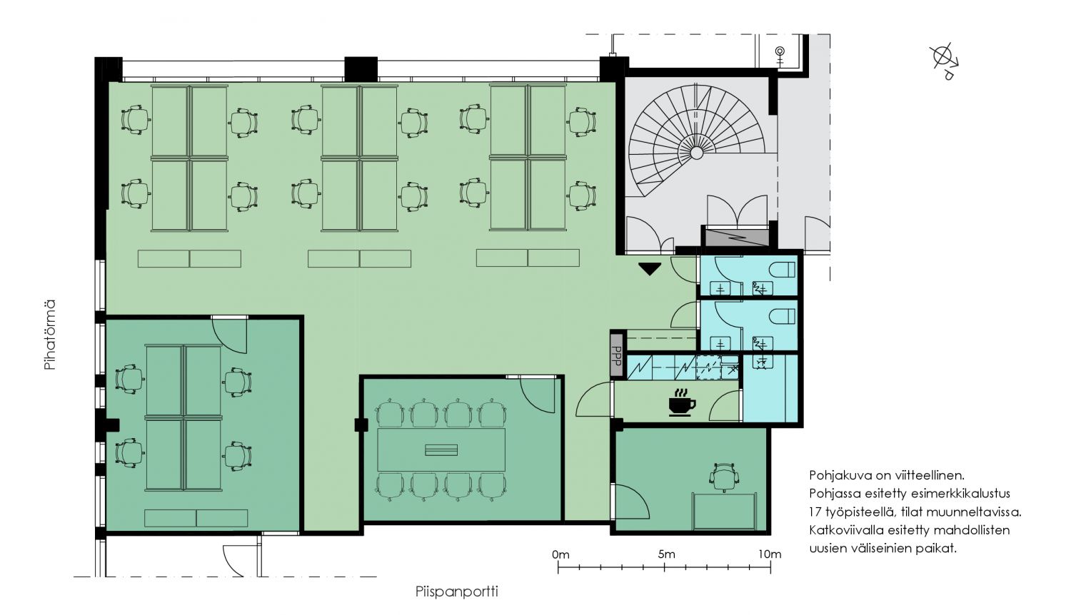 Tämä espoolainen liike- ja toimistokiinteistö tarjoaa tehokkaat ja helposti muokattavat tilat, jotka taipuvat monenlaisiin tarpeisiin. Kiinteistössä on kattavat palvelut kuten neuvottelutiloja, lounasravintoloita ja saunatila.
