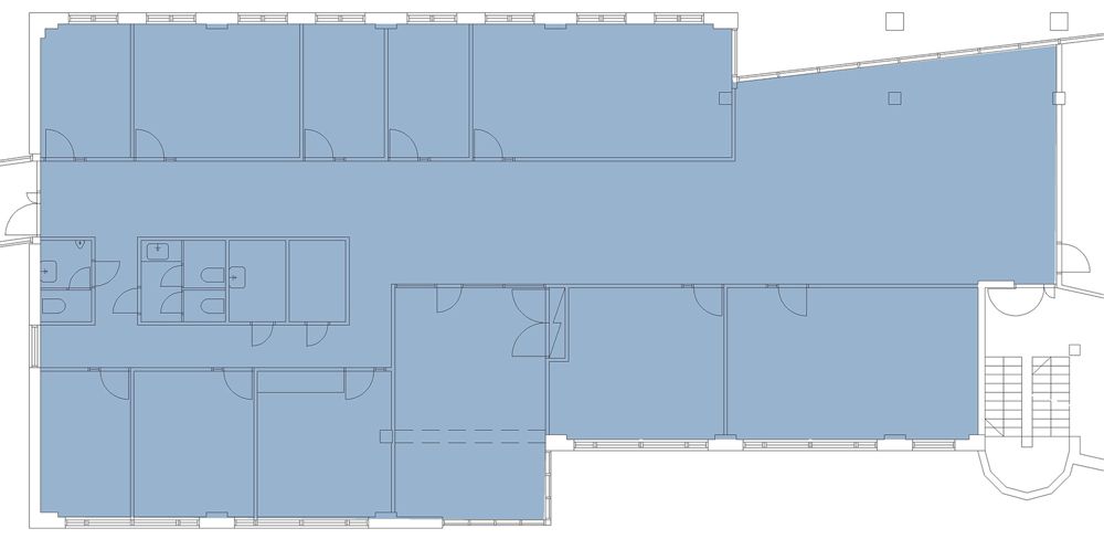 Valoisassa tilassa sekä avotilaa että erillisiä toimistokäyttöön sopivia huoneita. Tilan viihtyisyyttä lisää jäähdytys.