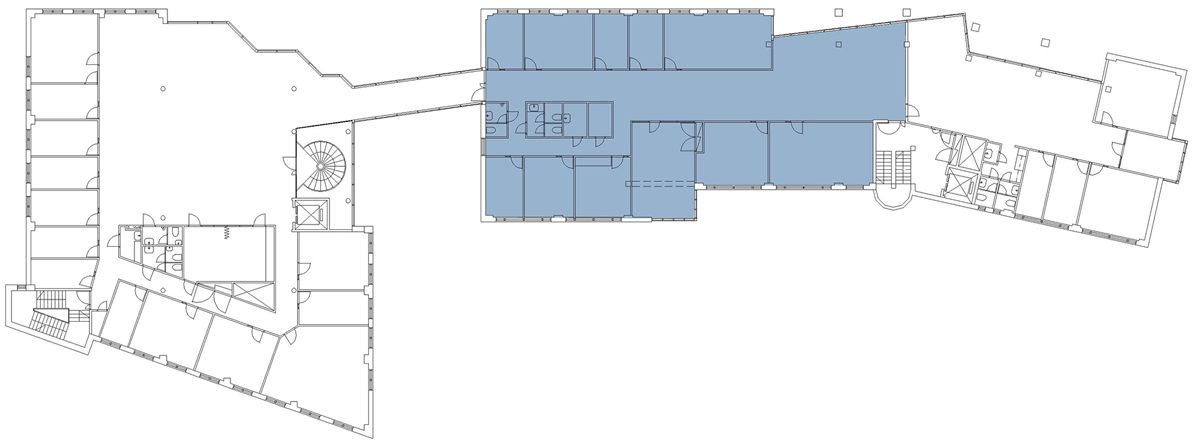 Rakennuksen ylimmässä kerroksessa on saunatilat, joita vuokrataan kiinteistön kaikille asiakasyrityksille.