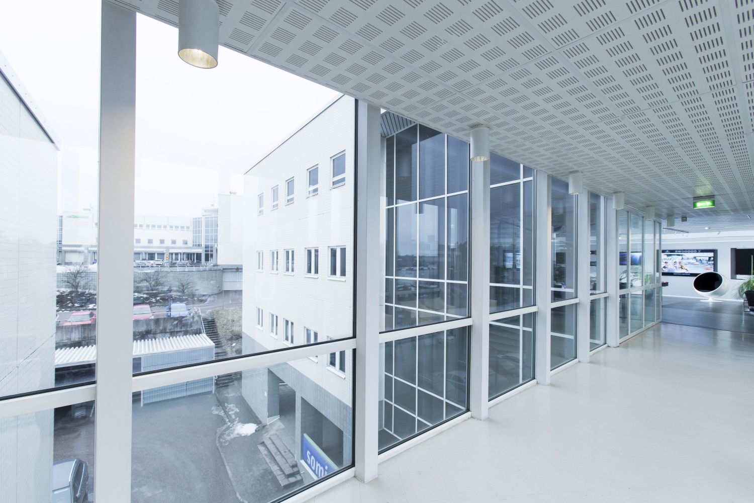 Espoon Friisilässä sijaitseva kiinteistö on osa kolmen erillistalon muodostamaa harmonista kokonaisuutta. Toimistotalossa on valoisaa työskentelytilaa.