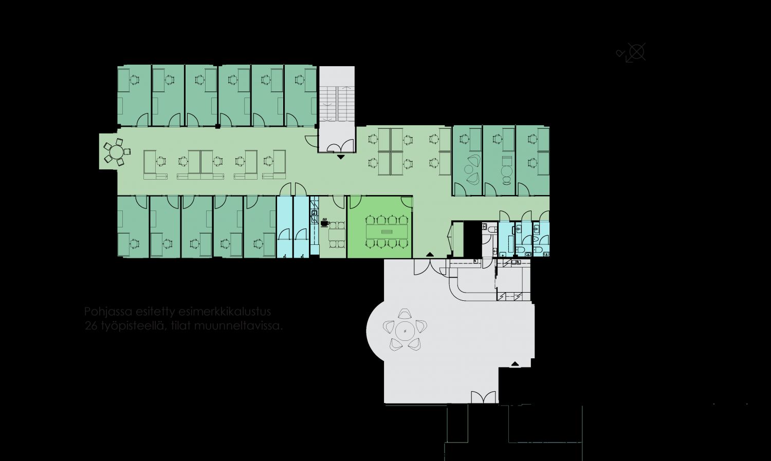 Vapaa siistikuntoinen toimisto. Tilaan mahdollisuus toteuttaa asiakkaan toivoma tilaistutus.