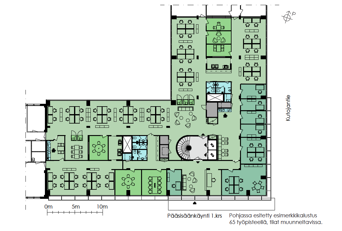 Kiinteistön toimistotilat ovat muokattavissa käyttäjien tarpeisiin sopiviksi.