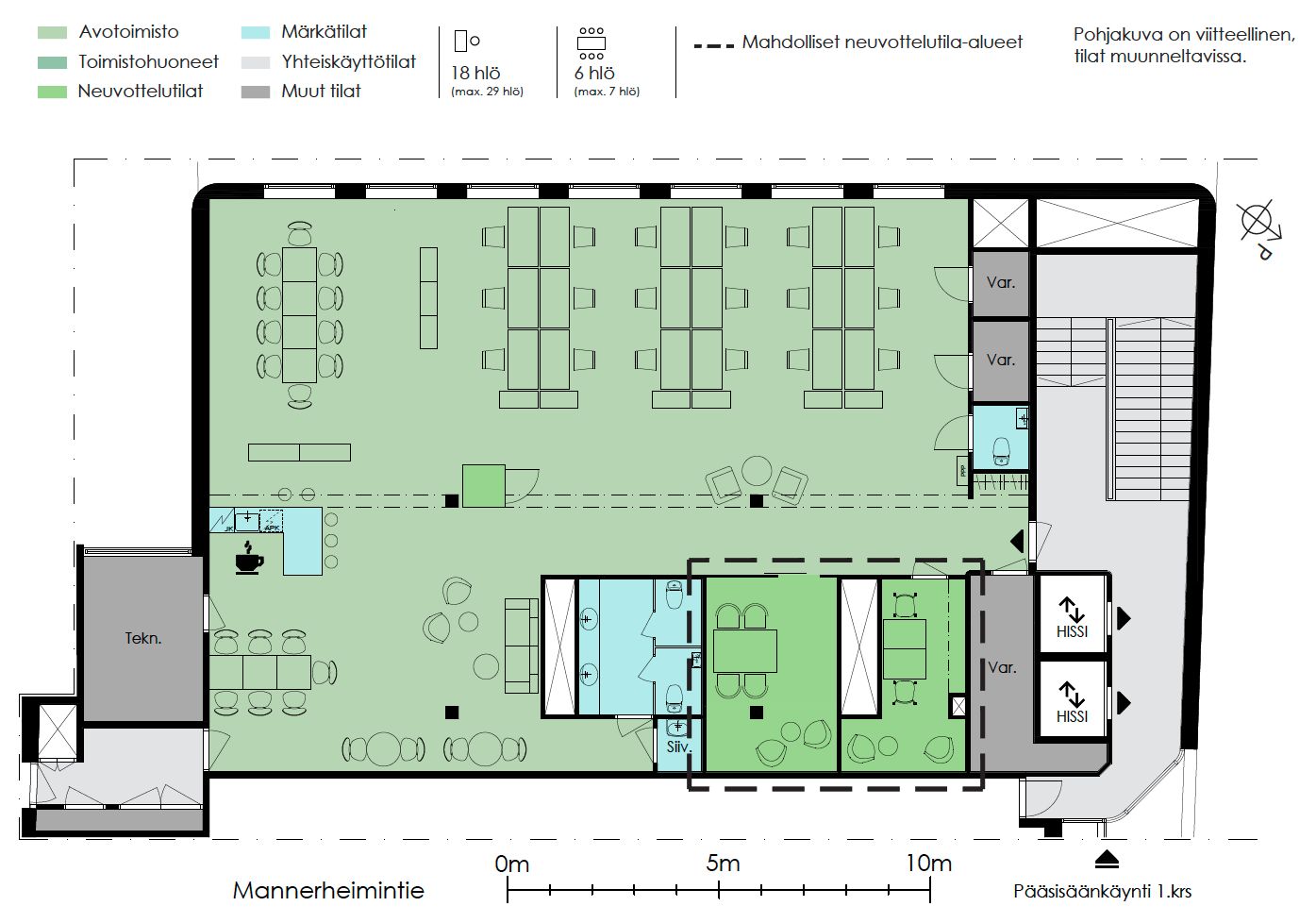 Alun perin viehättävänä asuinrakennuksena toiminut kiinteistö on muokattu tehokkaasti toimitilakäyttöön sopivaksi.