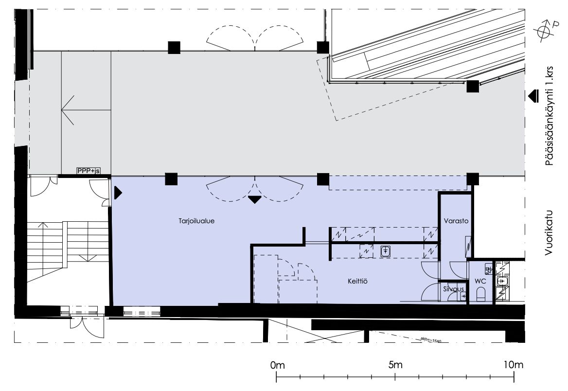 Tehokas liiketila perinteikkäässä Fennia-korttelissa. Tila on yhdistettävissä viereiseen liiketilaan, jolloin kokonaisuus on n. 186 m². Tila ei sovellu ruokaravintolatoimintaan.