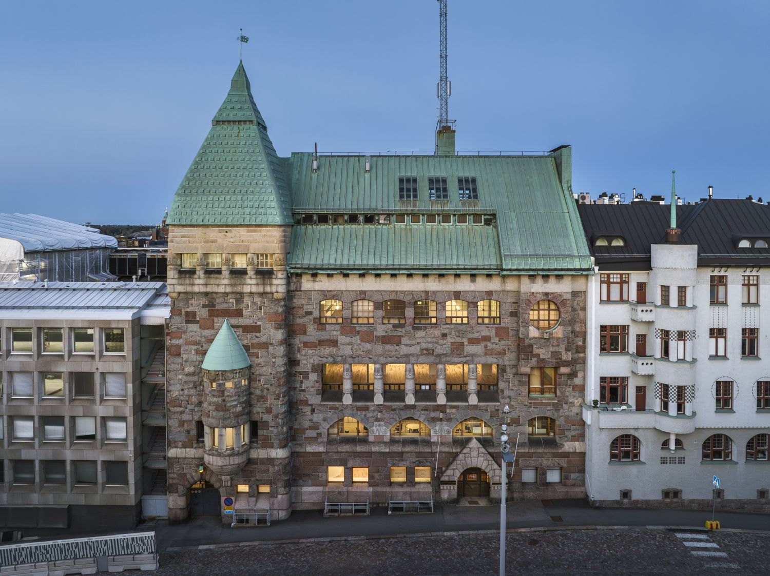 Arkkitehti Lars Sonckin suunnittelema upea jugendtyylinen kivilinna Helsingin keskustan arvoalueella.