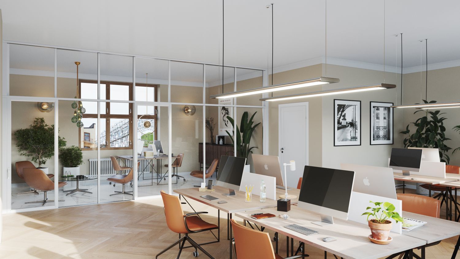 Persoonallinen toimistotila tunnelmallisessa jugendlinnassa. Tilavat, valoisat ja korkeat huoneet.