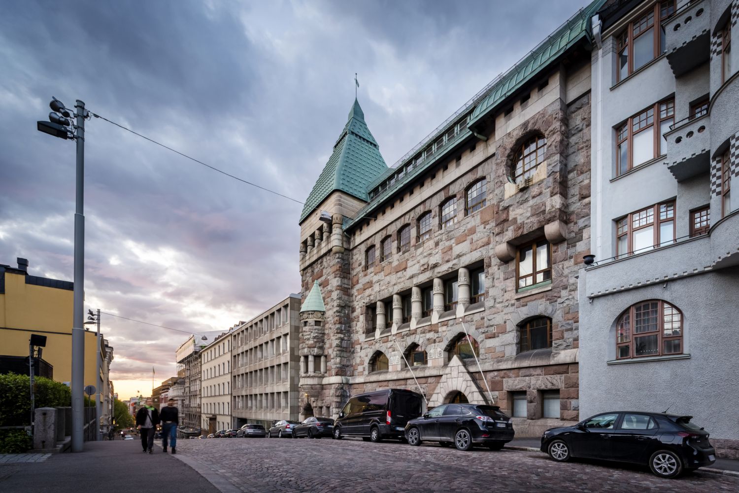 Arkkitehti Lars Sonckin suunnittelema upea jugendtyylinen kivilinna Helsingin keskustan arvoalueella.
