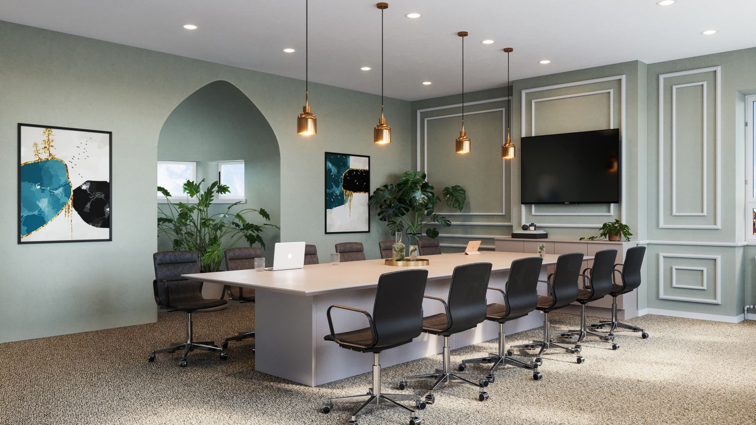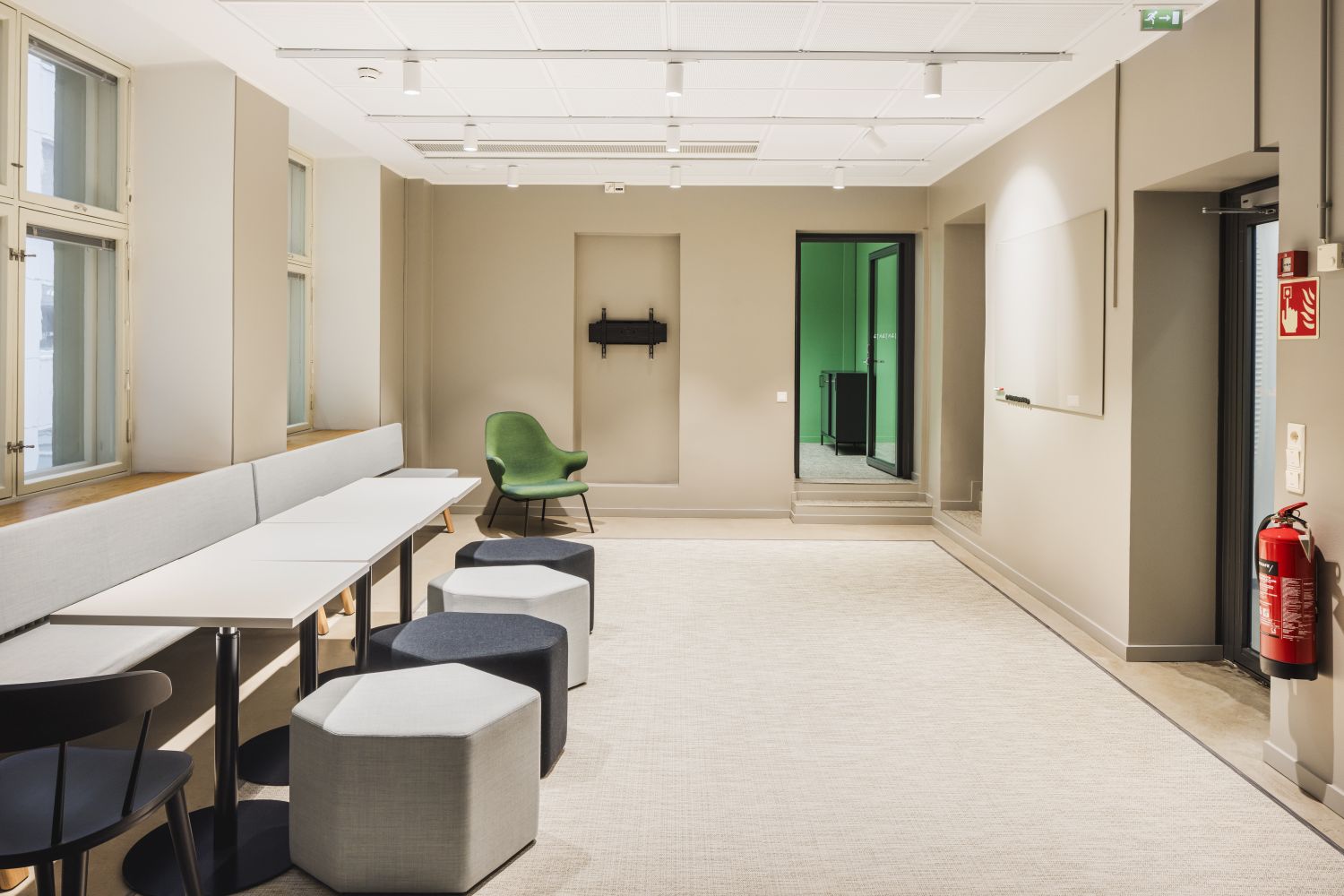 Persoonallinen toimistotila jugendlinnassa. Tilavat ja korkeat huoneet antavat mahdollisuuden moneen käyttöön.