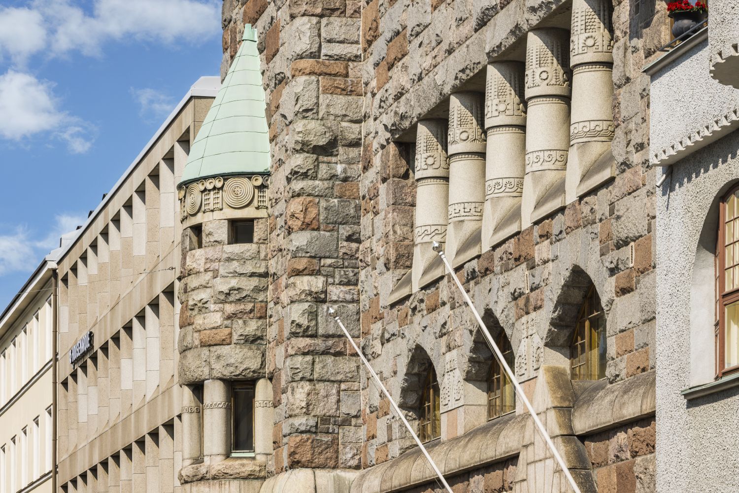 Arkkitehti Lars Sonckin suunnittelema upea jugendtyylinen kivilinna Helsingin keskustan arvoalueella.