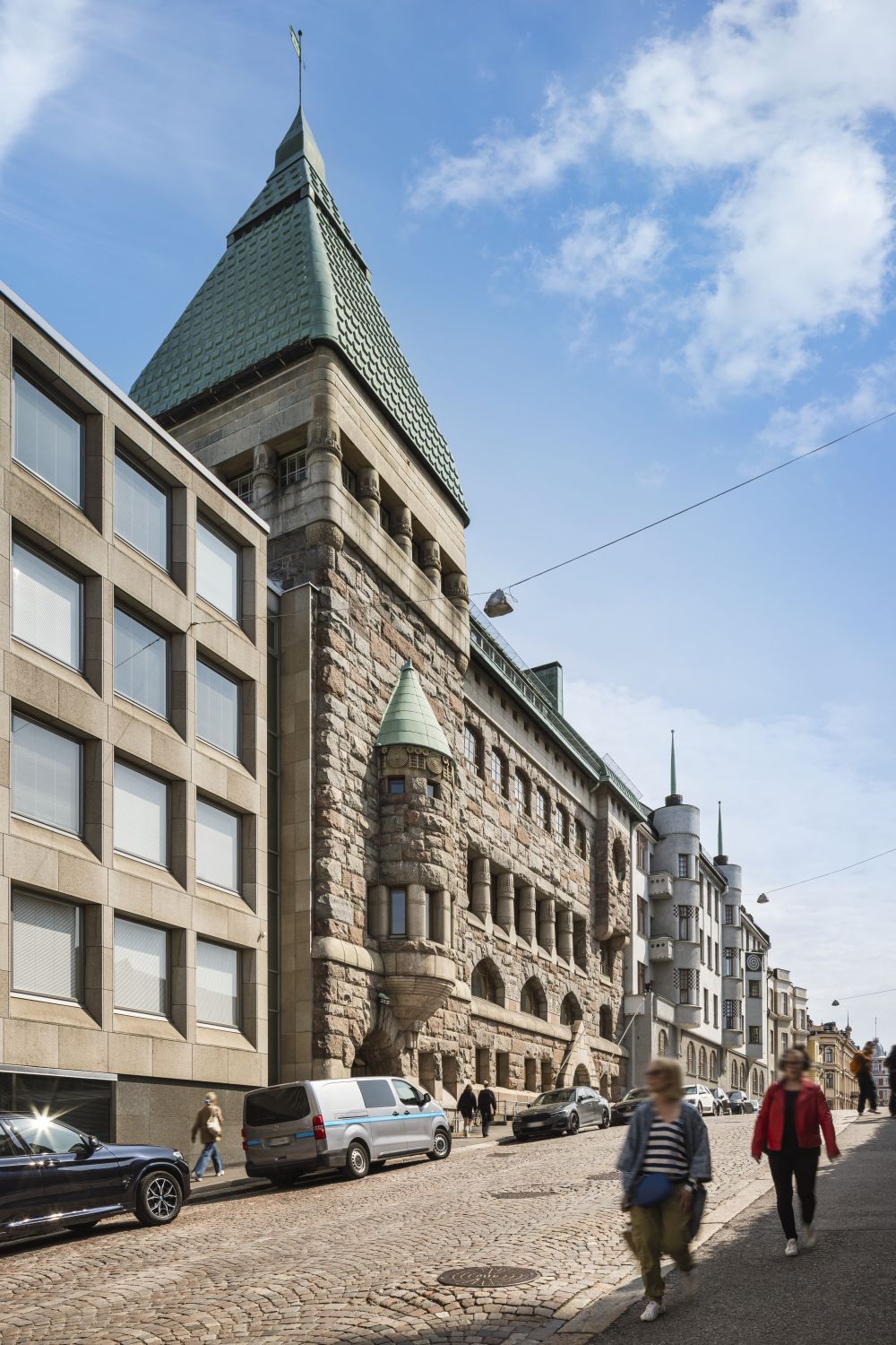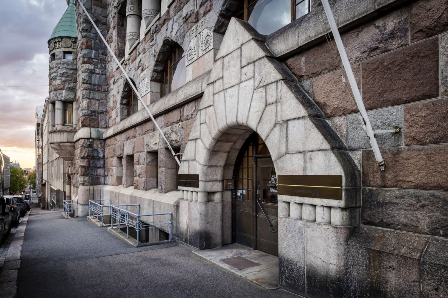 Arkkitehti Lars Sonckin suunnittelema upea jugendtyylinen kivilinna Helsingin keskustan arvoalueella.