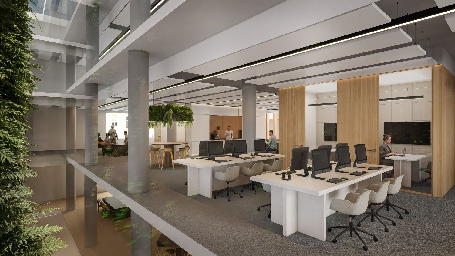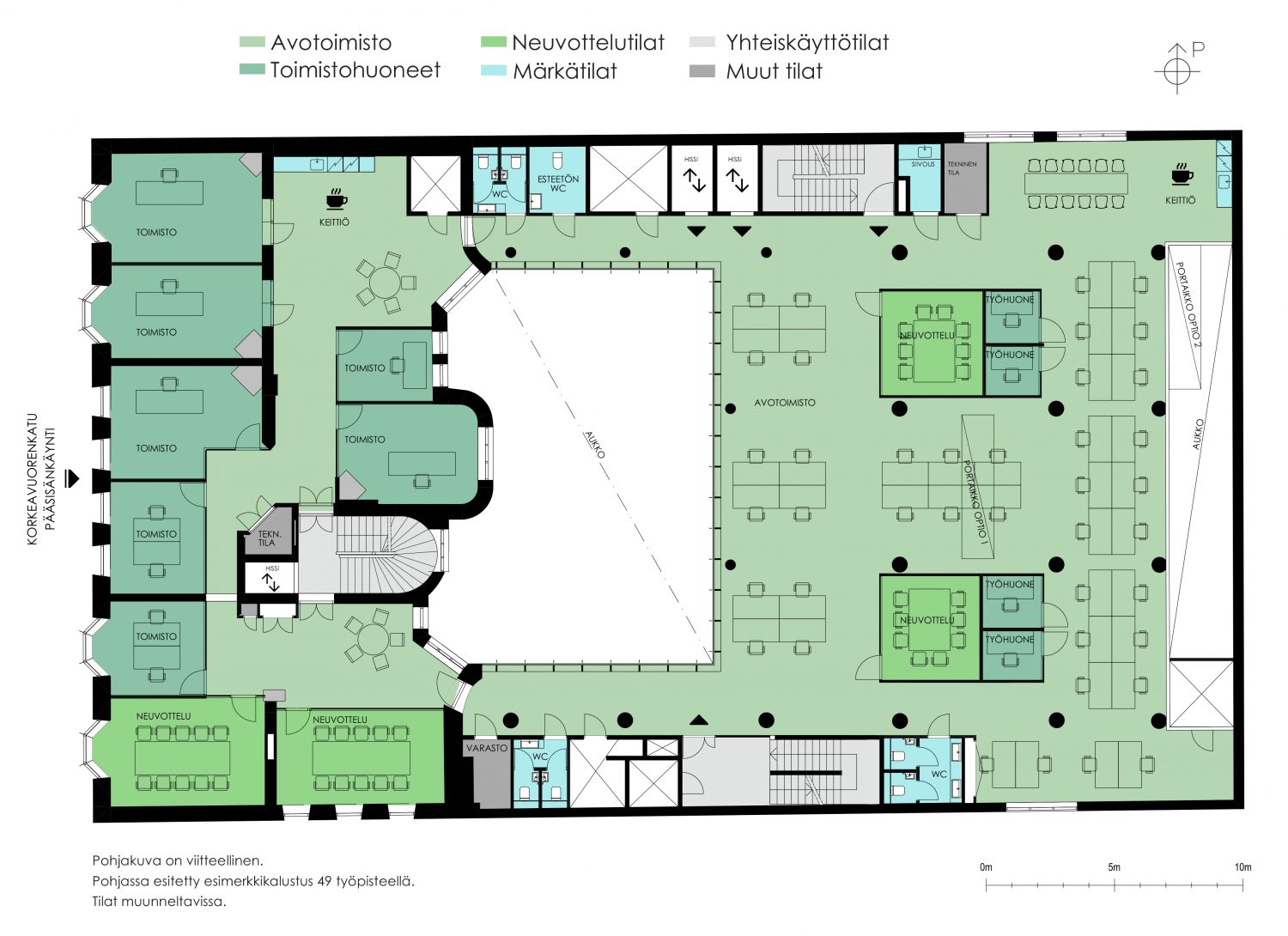 3. kerroksen muuntojoustavaa toimisto- ja neuvottelutilaa. Tilojen välille on mahdollista rakentaa näyttävä sisäporras. Keskellä kerrosta oleva atrium tuo tiloihin lisää luonnonvaloa. Tilaratkaisut toteutetaan toiveiden mukaan.