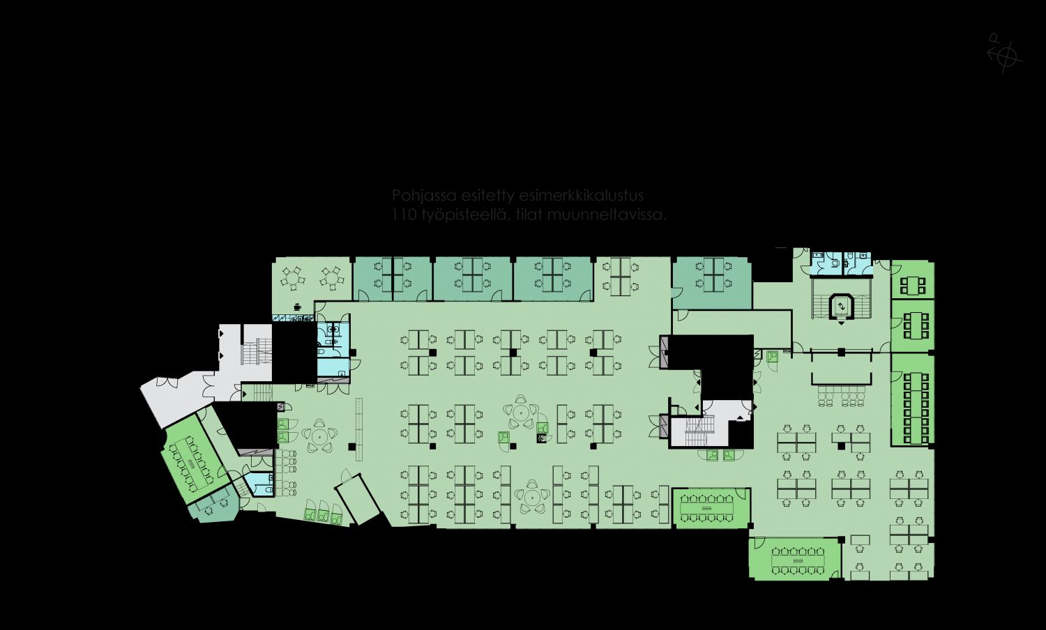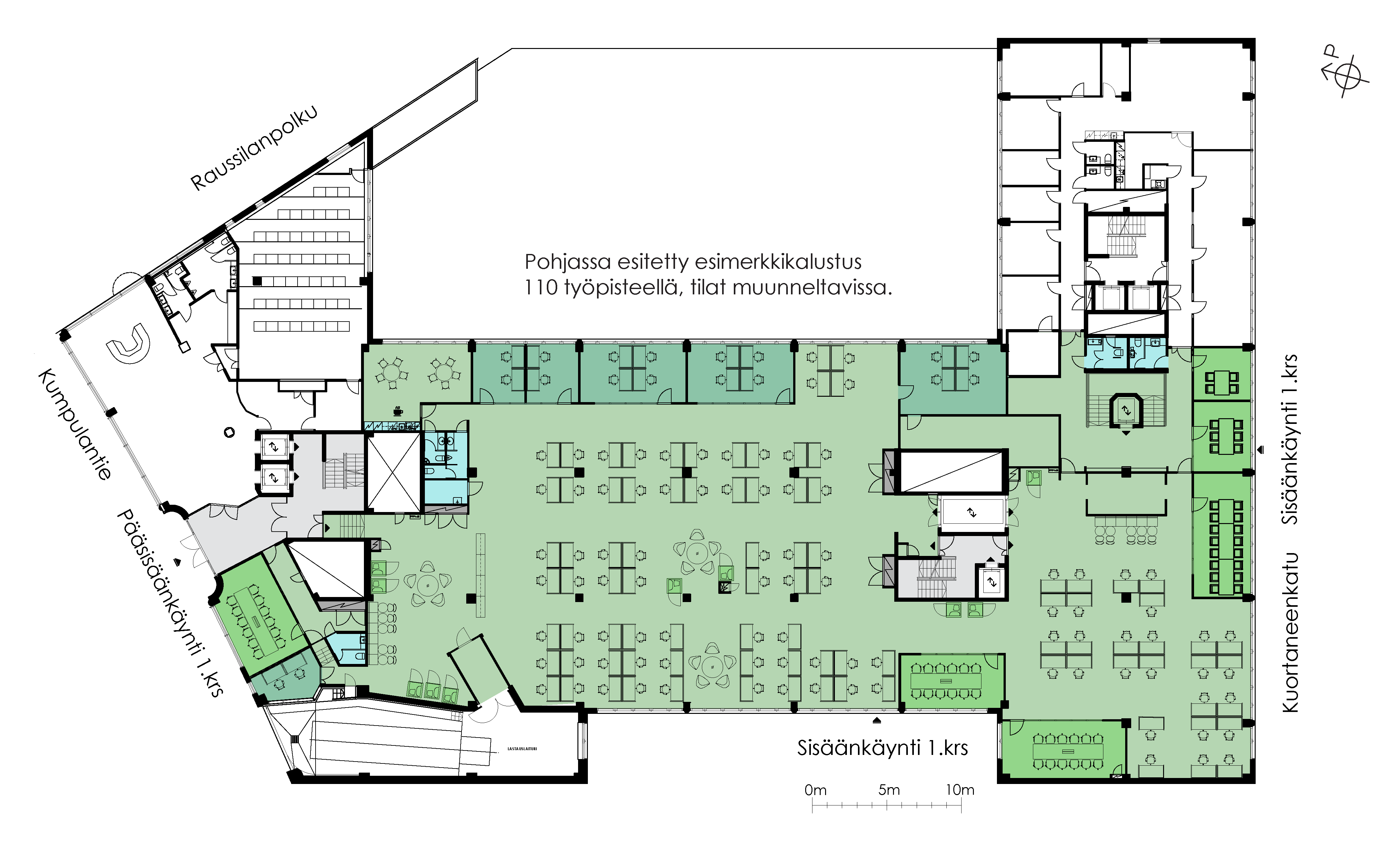 Viisikerroksinen kohde tarjoaa mahdollisuuden tehokkaiden hybriditilojen, yksityisten työhuoneiden tai yhteisöllisten avotilojen rakentamiseen. Valoisiin tiloihin mahtuu työskentelemään jopa 500–750 henkilöä. Kohteen valtteja ovat hieno auditoriotila ja loistavat tavarankuljetusmahdollisuudet. Entisessä teknologiatalona kohteessa on myös erinomaiset tietoliikenneyhteydet.