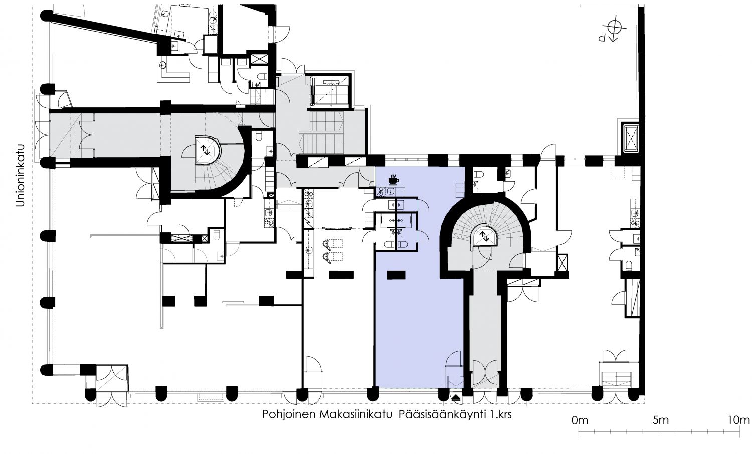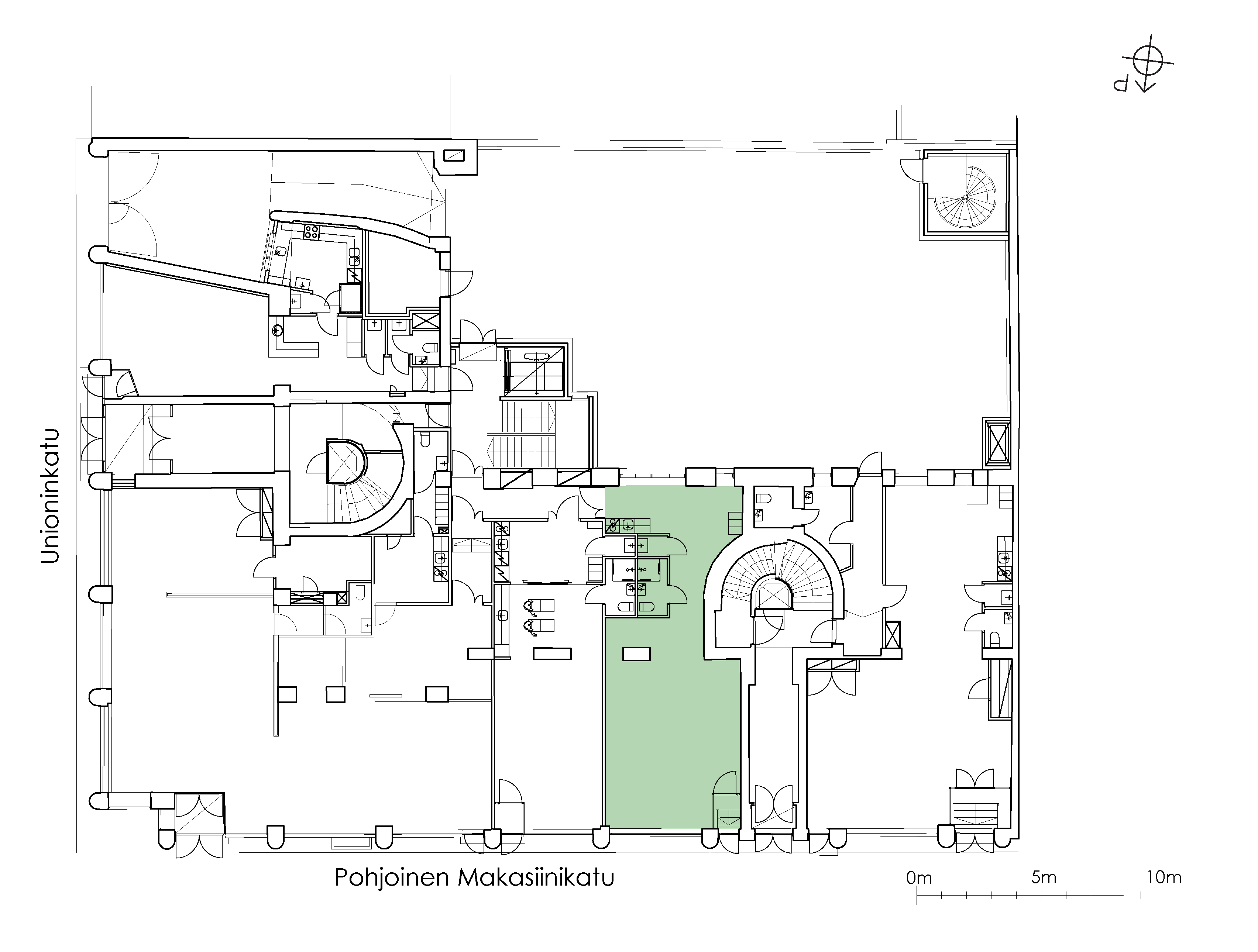 Tämä Unioninkadun toimisto- ja liiketilakiinteistö sijaitsee Kaartinkaupungissa. Lyhyen kävelymatkan päässä on useita ravintoloita ja hotelleja, jotka sopivat vaativaankin makuun. Aivan vieressä on muitakin keskustan helmiä, kuten Vanha kauppahalli ja Tähtitorninmäen sekä Esplanadin puistot. Kaartinkaupunki on uuden ja vanhan viehättävä sekoitus. Keskellä Helsinkiä, mutta omassa rauhassaan.