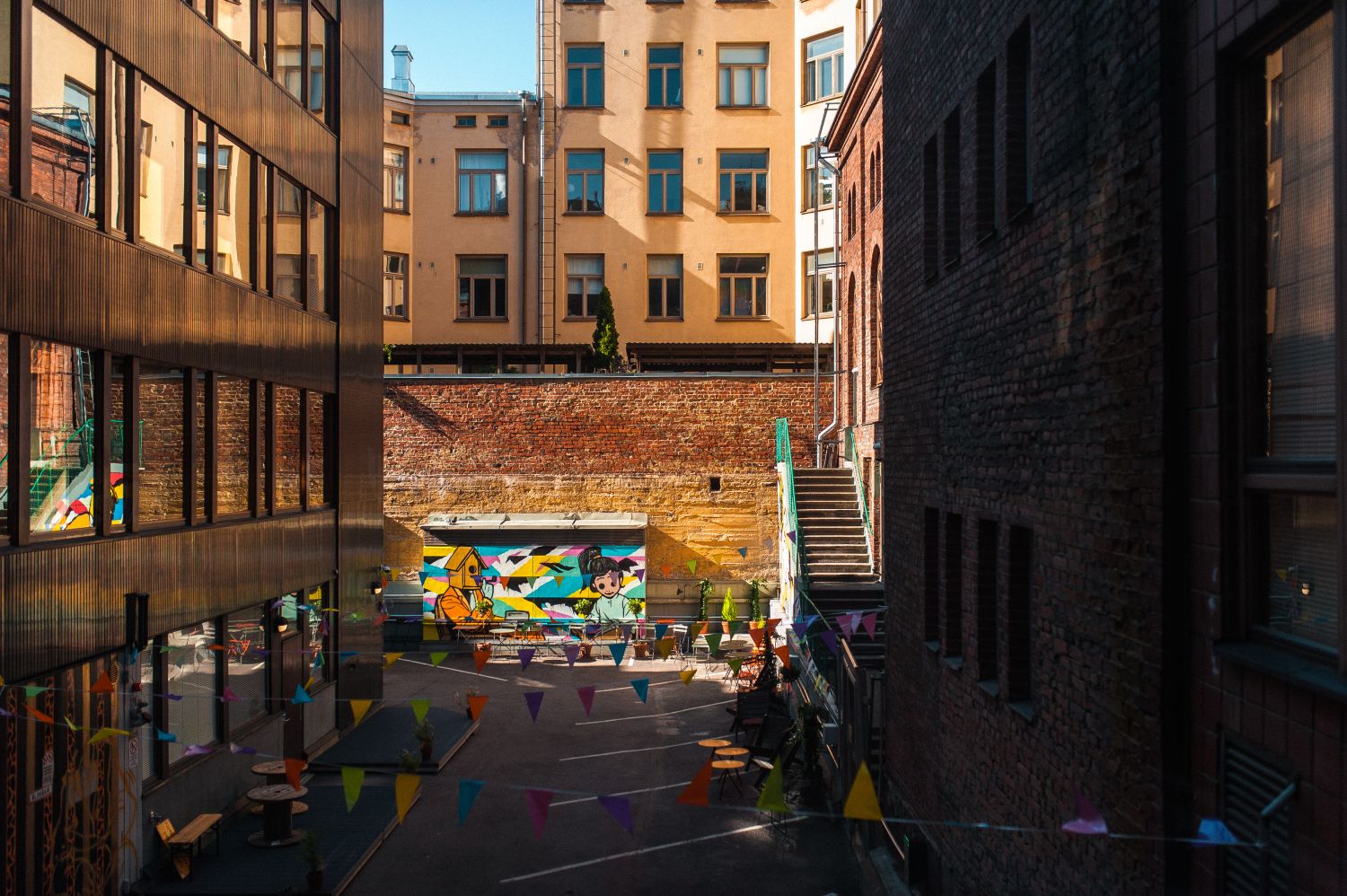 Ja mitä muuta kuuluu pakettiin? Ainakin lyhyet irtisanomisajat, joka torstaiset afterit, riippumatolla varusteltu päikkärihuone, aula- ja postipalvelut, pyöräparkki lukitulla sisäpihalla ja suihkutilat. Sekä luonnollisesti siivous, sähkö, netti, kahvit, teet, viikottaiset hedelmät ja niin paljon popparia kun jaksat syödä.