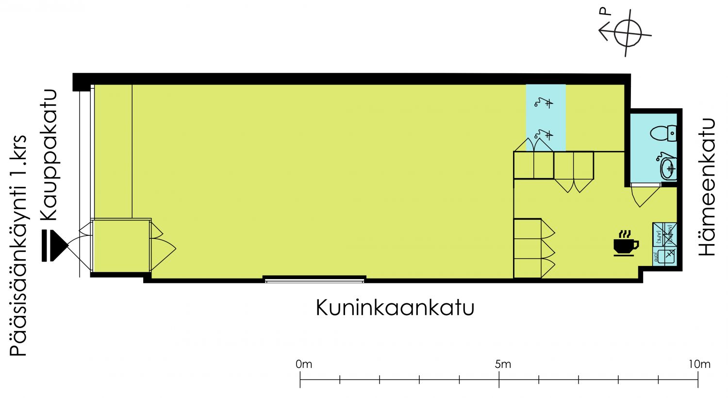 Katutason valoisa liiketila. Sopii erinomaisesti esim. parturikampaamoksi. Tila sijaitsee Kauppakadun puolella.