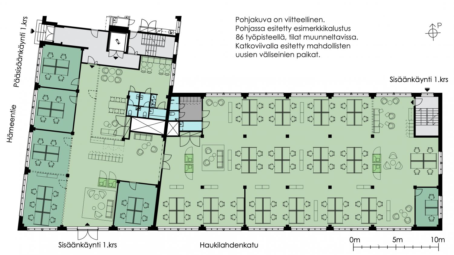 Vallilan siirtolapuutarhan lähellä sijaitseva toimitilakiinteistö sopii sekä toimisto- että varastokäyttöön. Tilat on mahdollista muunnella erilaisten yritysten tarpeisiin sopiviksi.