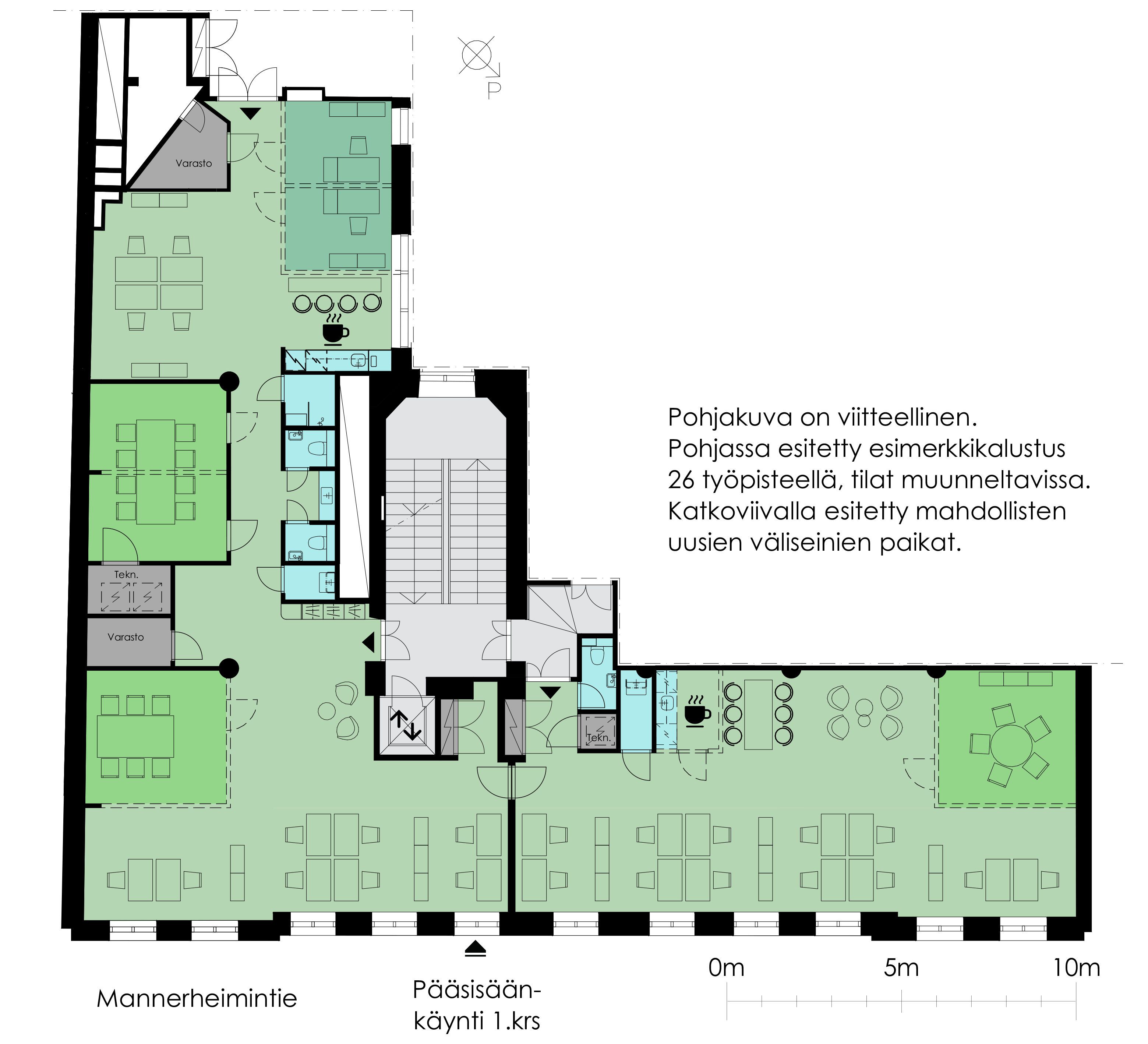 Täysin uudistettu toimistotila, joka soveltuu monitoimitilaksi. Hienot ikkunanäkymät Mannerheimintielle.