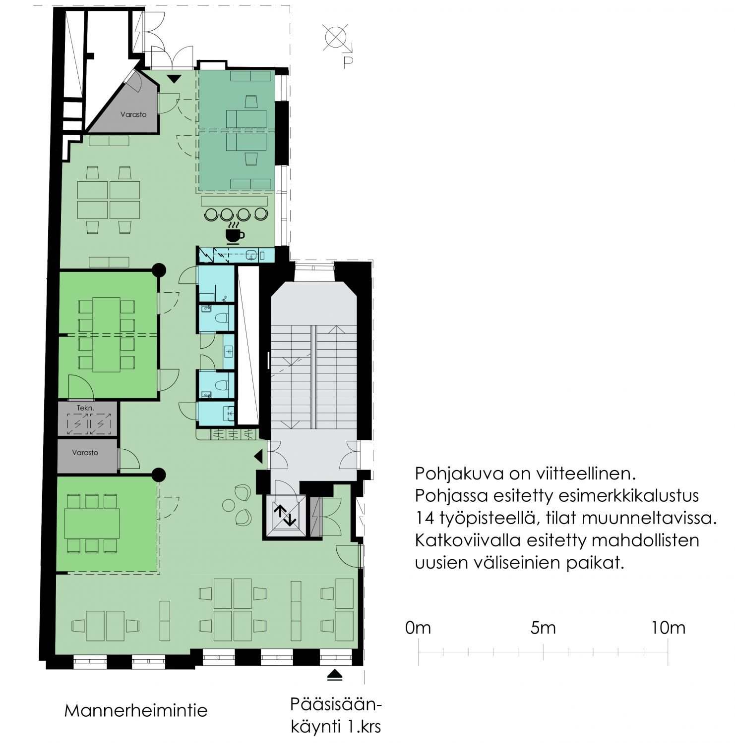 Täysin uudistettu toimistotila, joka soveltuu monitoimitilaksi. Hienot ikkunanäkymät Mannerheimintielle.
