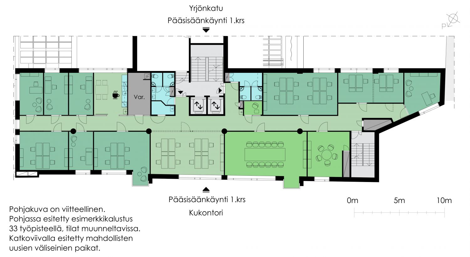 Siisti ja valoisa toimistotila Forumin sydämessä. Ikkunanäkymät Kukontorille.